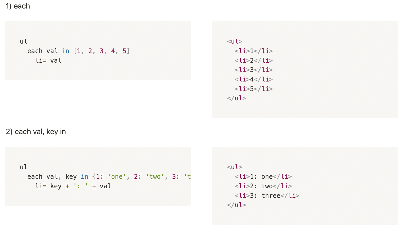 - Mixins 기능으로 재사용 가능한 Pug block 을 만들 수 있다.